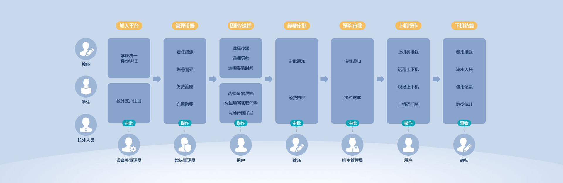 以高效共享为核心理念,通过物联网手段,为学校、科研单位等的实验仪器提供在线预约、管理审批、资金账户等整体解决方案