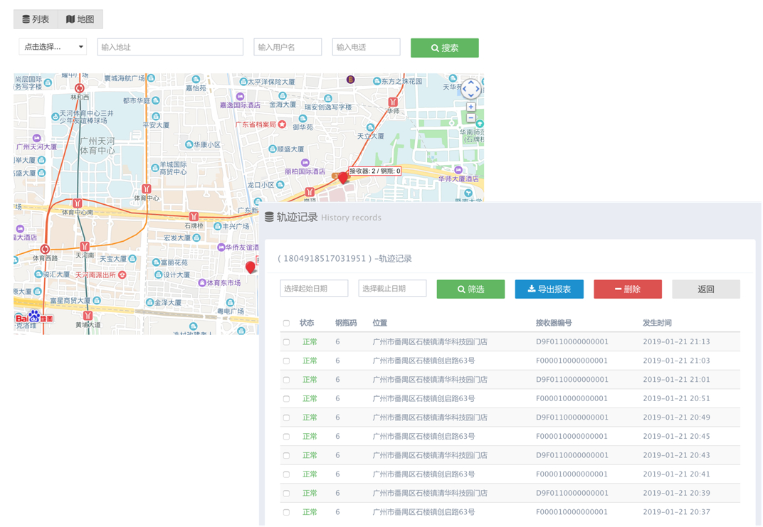 “仪器追踪定位管理子系统”主要面向管理员提供仪器设备位置信息、实时状态、变化轨迹历史查询功能,辅助仪器固定资产管理。